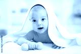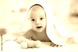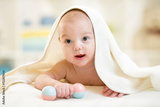 baby boy under the towel after bathing at home