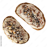 Hummus Toast with Rustic Bread, Vegetarian Snack or Breakfast on White Background