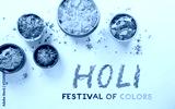 Happy Holi decoration, the indian festival.Top view of colorful holi powder on white background.
