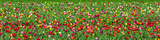 Tulpenfeld im Frühling mit bunten und roten Tulpen