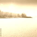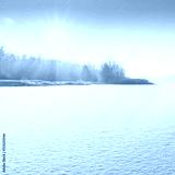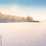 Schneebedecter, gefrohrener See beim Sonnenschein