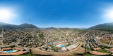 360 degree panoramic view of the upper part of Oludeniz, Fethiye, Turkey, where many hotels and private houses are located. Aerial seamless spherical panorama