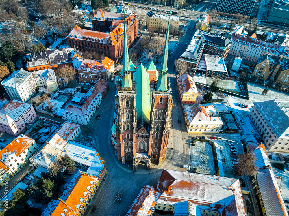 Aerial view of Wroclaw in winter, Poland
