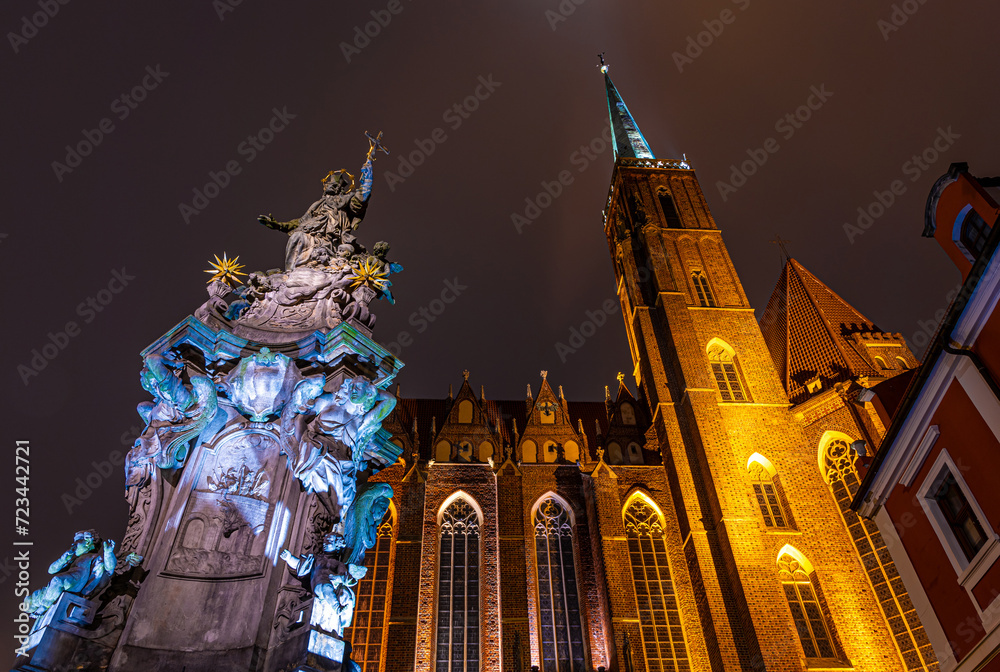 View of Collegiate Church of the Holy Cross in Wroclaw in the night, Poland