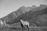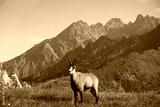 Tatrzańska kozica przechadza się po szerokiej górskiej przełęczy. A Tatra chamois walks along a wide mountain pass.