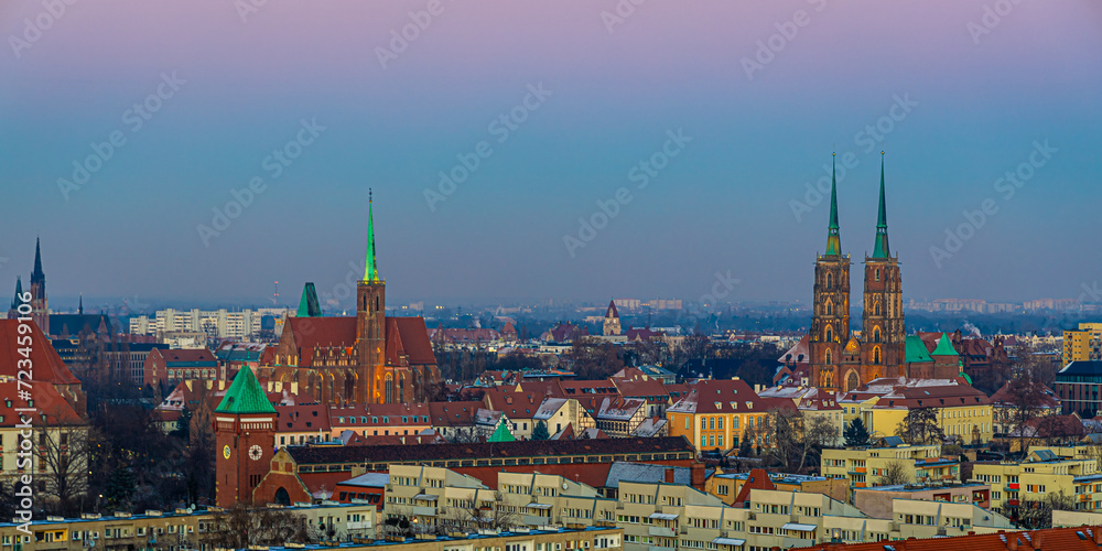 View of Wroclaw market square after sunset, Poland