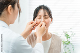 美容クリニックで二重整形のシミュレーションをする女性患者と美容外科の医師
