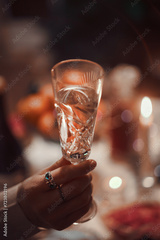 Beautiful retro holiday decor, birthday party. Burning candles and lights in the dark, Christmas