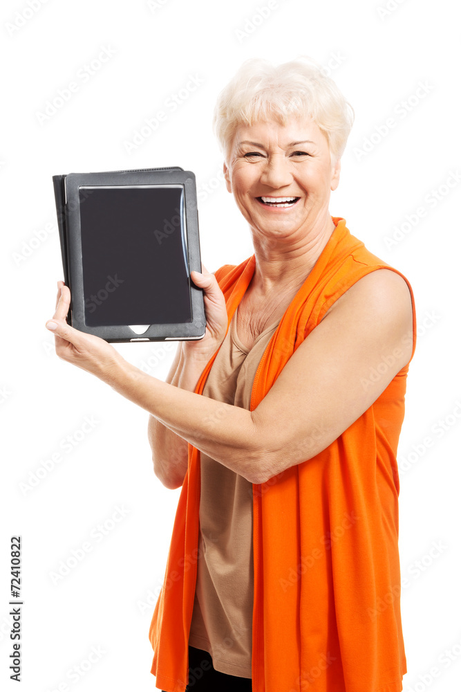 Senior woman holding a tablet