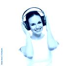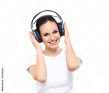 Teenage girl listening to the music isolated on white