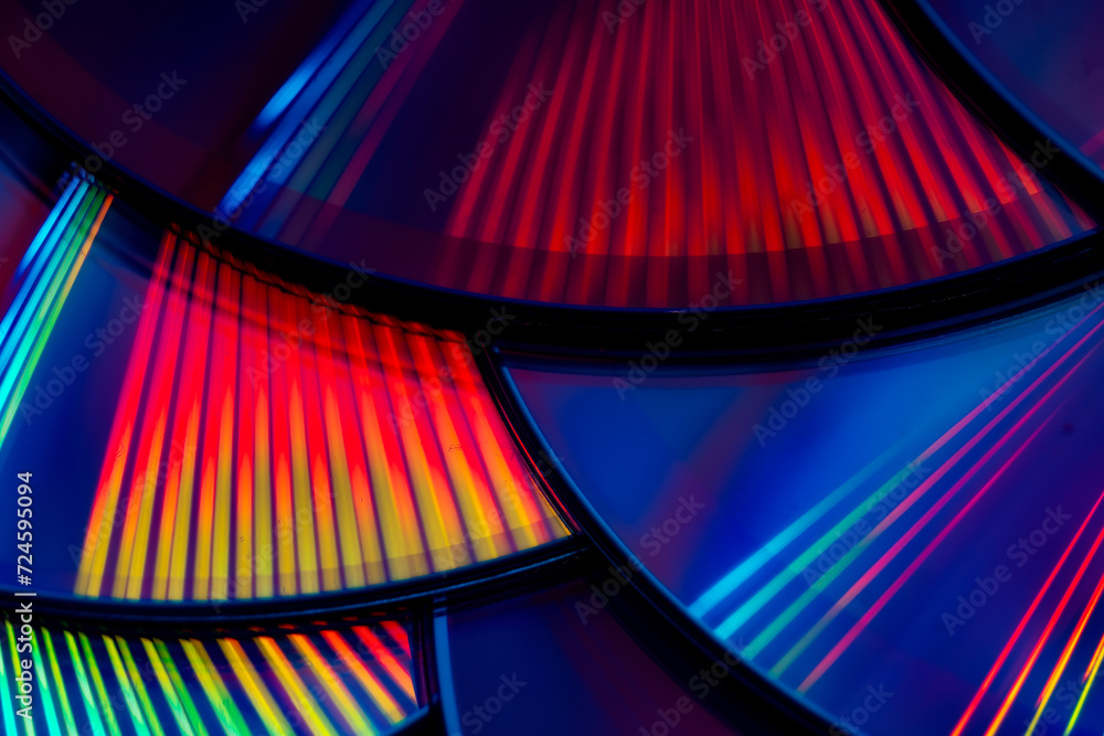 Reflection of the surface of a DVD discs with artistic lighting close-up