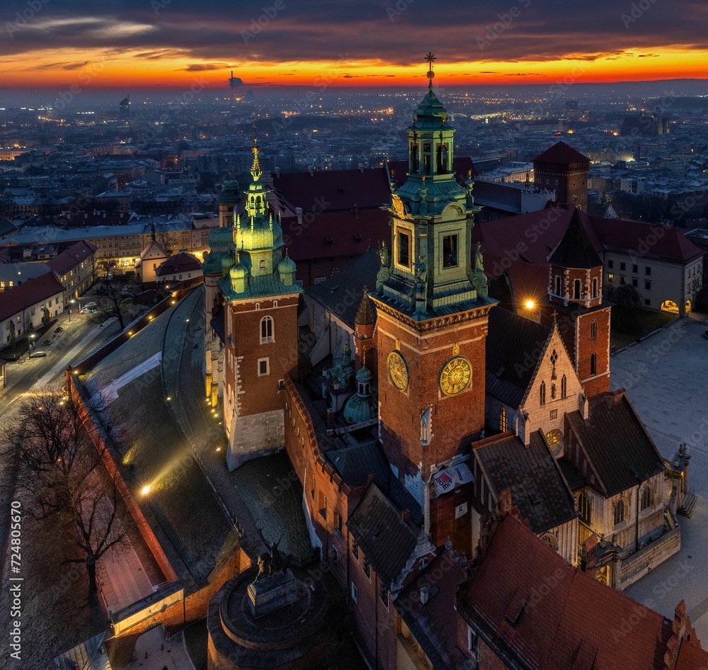 Zamek Królewski na Wawelu w bajeczny poranek - widok z drona