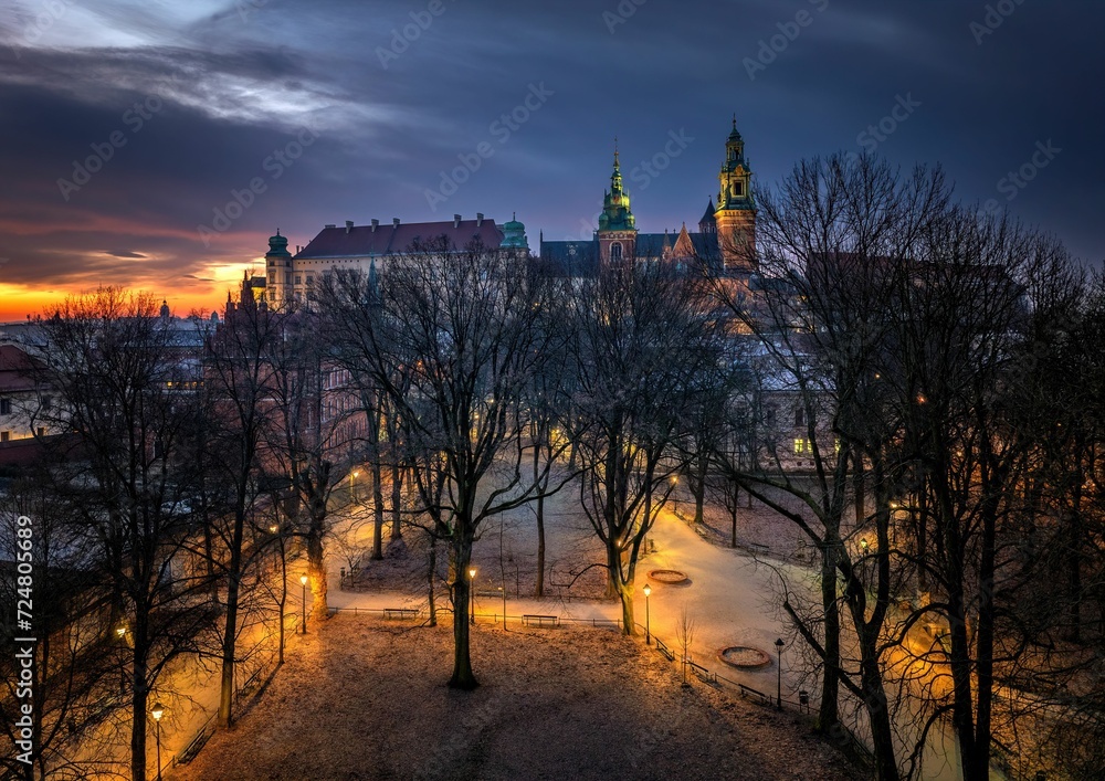 Zamek Królewski na Wawelu w bajeczny poranek - widok z drona