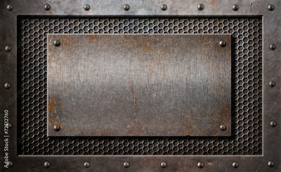 old metal rusty or rustic plate over comb grid background