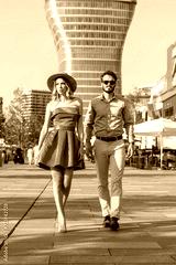 Nice looking couple walking down the street