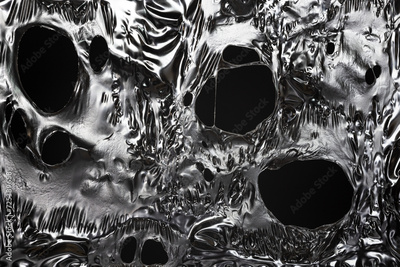 Melted Plastic Film Hole Overlay. Close-Up of Transparent Plastic Film Wrap With Textured Overlays and Shadows.
