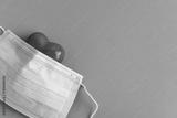 Red heart and medical mask on a blue background. Health and medicine concept.