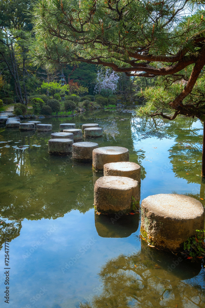 Heian Jingu Garden during full bloom cherry blossom in Heian Shrine, Kyoto, Japan