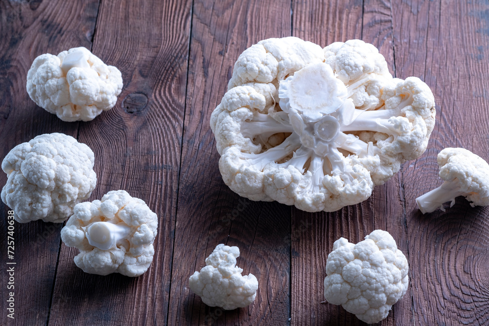 CauliflowerCauliflower on a wooden table. on a wooden table.