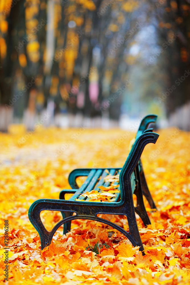 autumn landscape with fallen leaves and yellowed