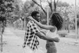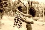 Date couple man and women valentine day. African black lover at park outdoors summer season vintage color tone