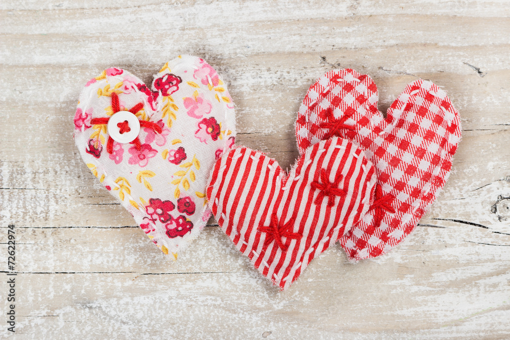Three decorative fabric heart for Valentines day