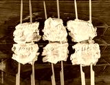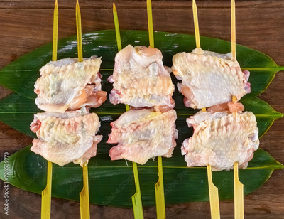Chicken Wings Shish Kebab cooking. Homemade cooking shashlik chicken wings for restaurant, menu, advert or package, close up, selective focus