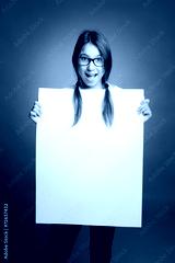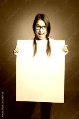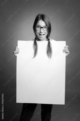 happy young girl holding a banner