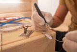 Electrician with Soldering Iron Attaching LED Stripe Cable