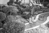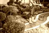 Backyard Brick Paths Pressure Washing Performed by a Worker