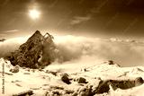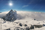 Climber climbing on Rysy mountain peak in High Tatras. Slovakia.