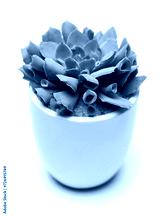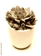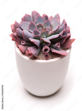 Potted Echeveria succulent house plant in white ceramic pot on white background