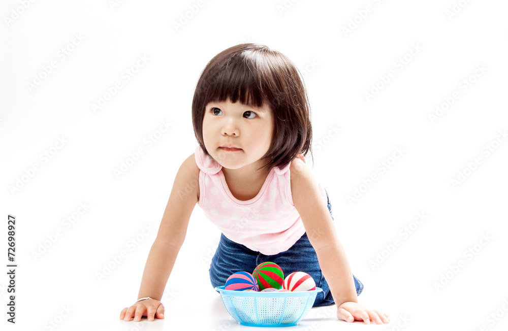 asian girl play colour ball