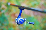 Carp fishing rods on the racks at the lake