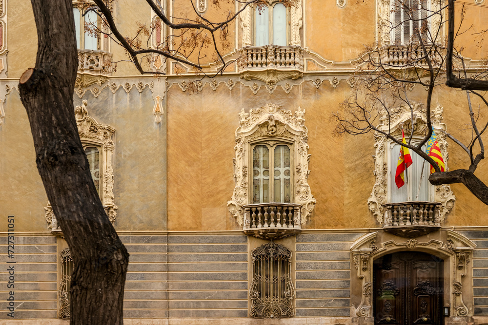 Valencia, Spain - January 1, 2024: Rococo Spanish architecture and sights on the streets of Valencia, Spain