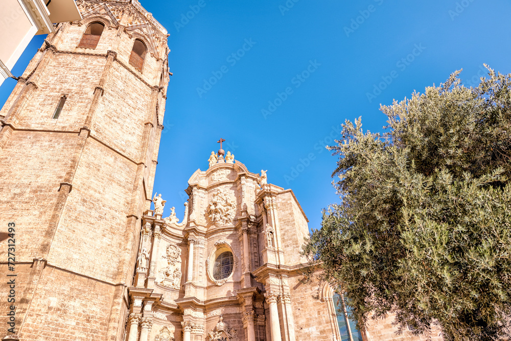 Valencia, Spain - January 1, 2024: The Valencia Cathedral and Miguelete of Valencia, Spain
