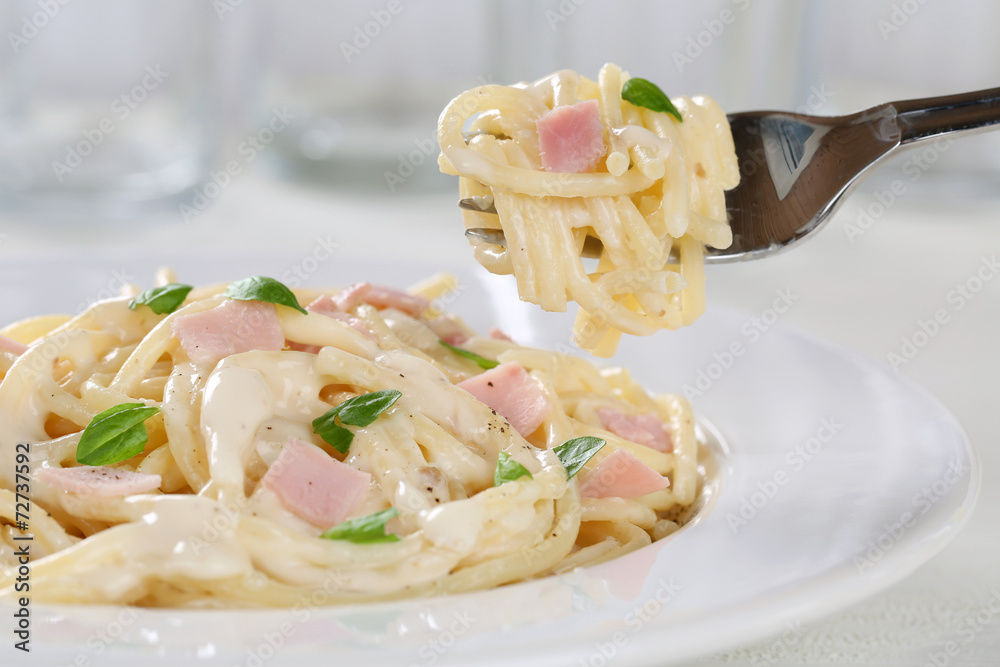 Spaghetti Carbonara Nudeln Pasta essen mit Gabel