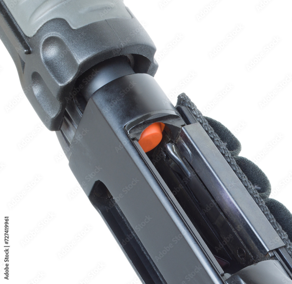 Pump action shotgun with empty chamber and mag