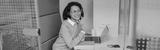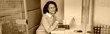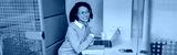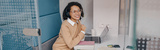 Pretty female manager in eyeglasses working on laptop while sitting in modern office