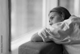 Lonely young woman lies on sofa, looking out window, having melancholic mood, suffer of unrequited love, break up, feel depressed, unhappy alone at home, pensive attractive female thinks about problem