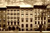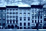 New York City old fashioned apartment buildings with ornate roof cornices