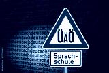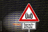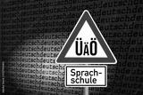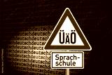 Deutsche Sprache, Verkehrsschild mit Umlauten und Hinweis auf eine Sprachschule