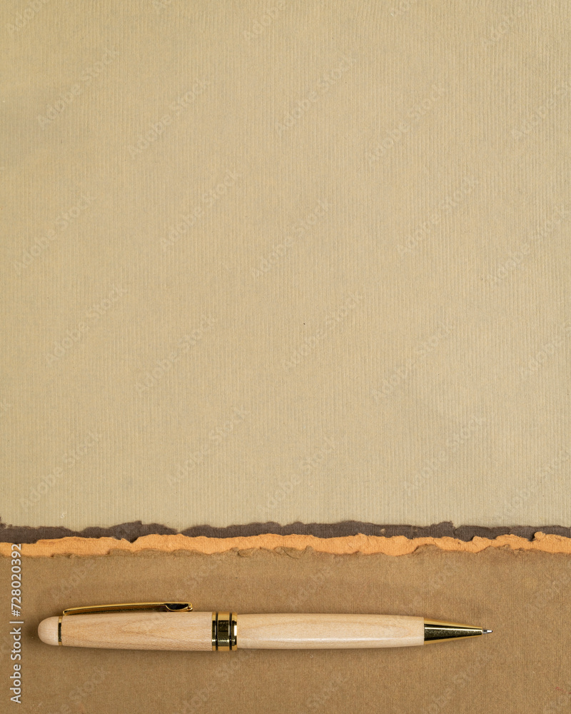 abstract paper landscape in pastel earth tones tones - collection of handmade rag papers with a pen