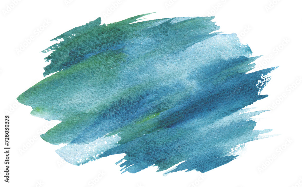 PNG Ink watercolor hand drawn smear blot brushstroke painting desing element. Wet texture blue color paper on transparent background.