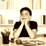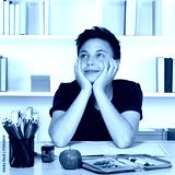 Junge beim Träumen und Denken im Unterricht in der Schule