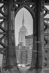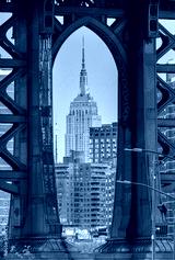 Cityscape with the Manhattan Bridge from Brooklyn in New York City.