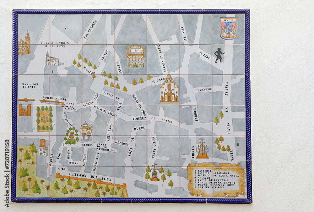 sevilla plano mapa de la ciudad en un cartel de azulejos cerámica 4M0A5585-as24