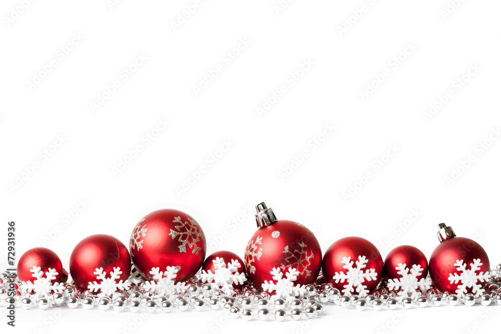 red christmas balls on white