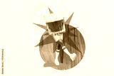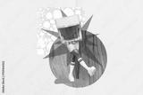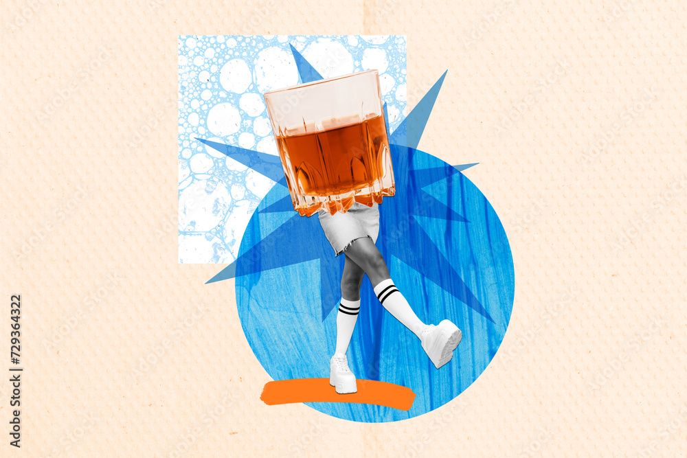 Collage poster of funky crazy girl no face head celebrate new year party isolated on drawing background
