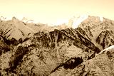 Winter landscape in the mountains not far from the city of Almaty. View of Kumbel Peak.
